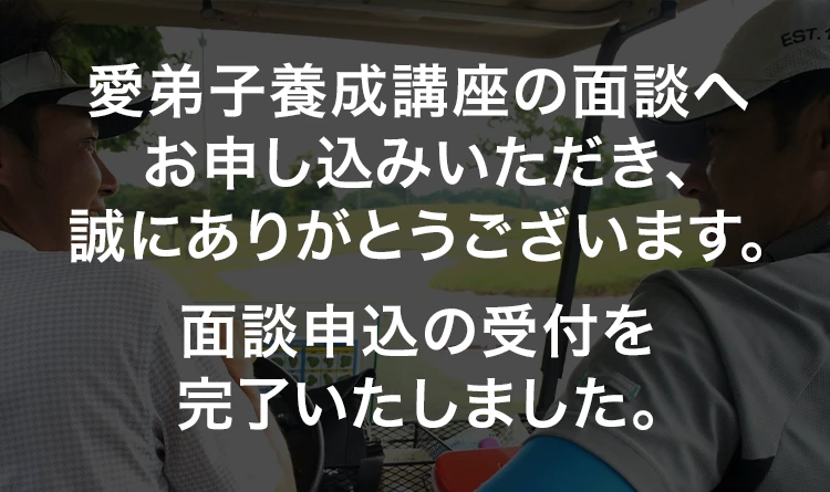 ゴルフパフォーマンス事務局よりご面談日の日程調整のご連絡をさせていただきます。お申し込みの際にご登録いただきました電話番号、もしくはメールアドレス宛にご連絡いたしますので、いましばらくお待ちくださいませ。