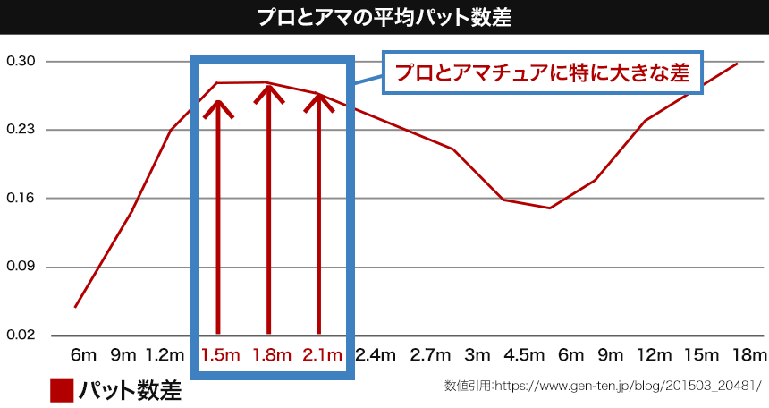 カップまで残り1.5~2m程度の距離のパット、入るか入らないか微妙な距離のパットがあります。