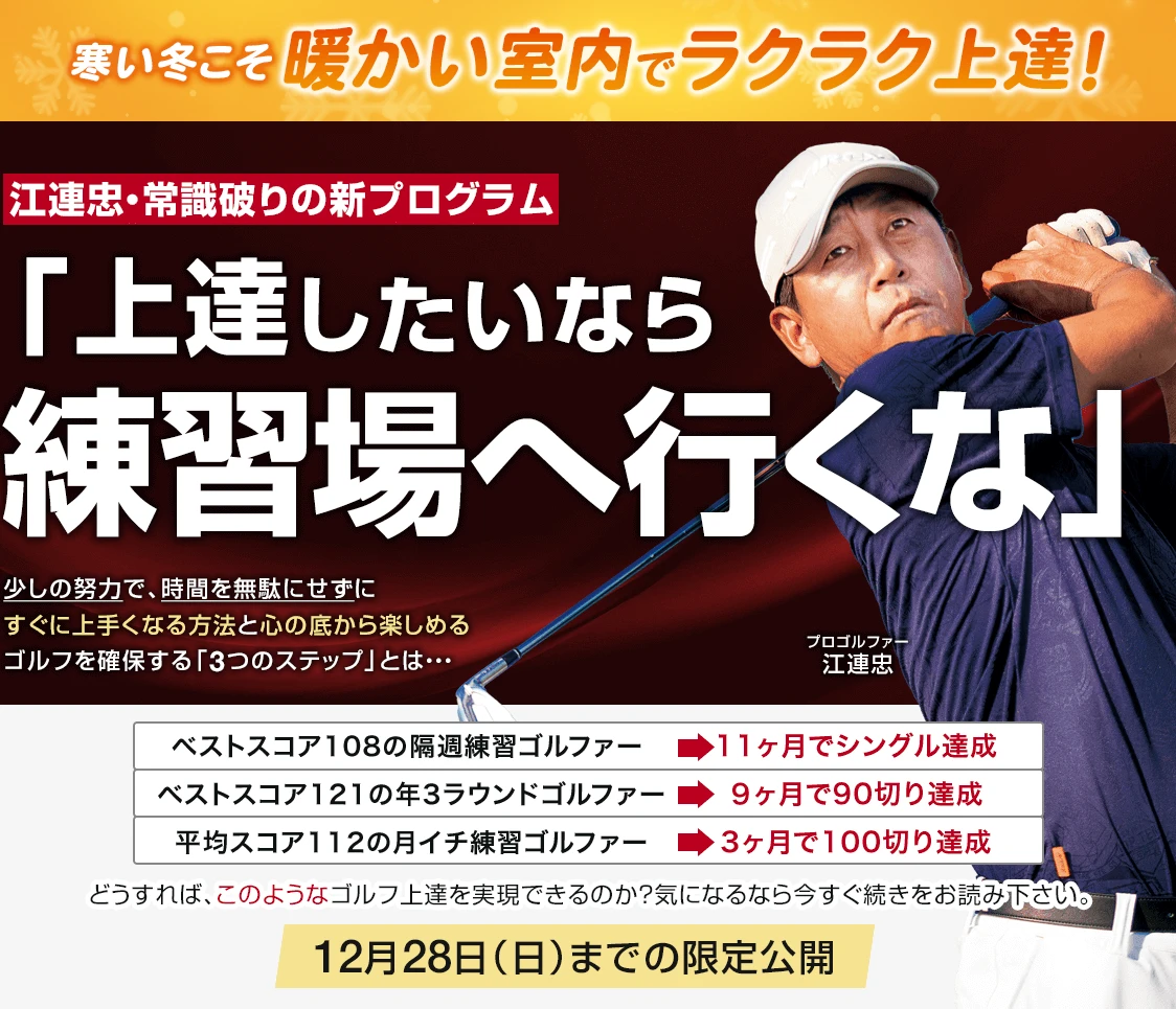 今回あなたにご紹介する「江連忠式・自宅ゴルフ上達プログラム」の中では、具体的にどんな内容をお伝えしているのか?