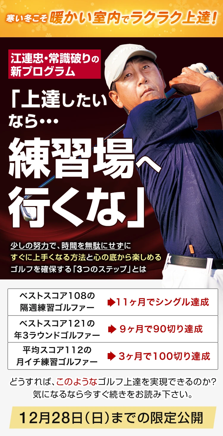 練習場に行く時間を今より半分にして頂いても、上達には全く支障はありません。