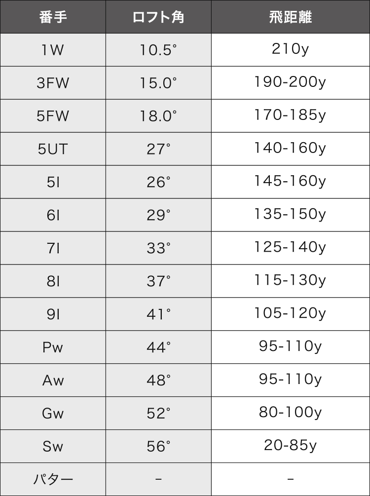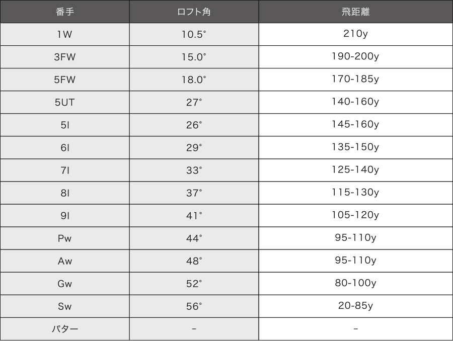 例えば、今のクラブセッティングが下記のようなゴルファーがいたとします。