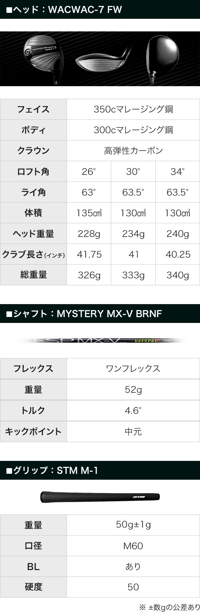 | ロフト角 | 26° | 30° | 34° | |||