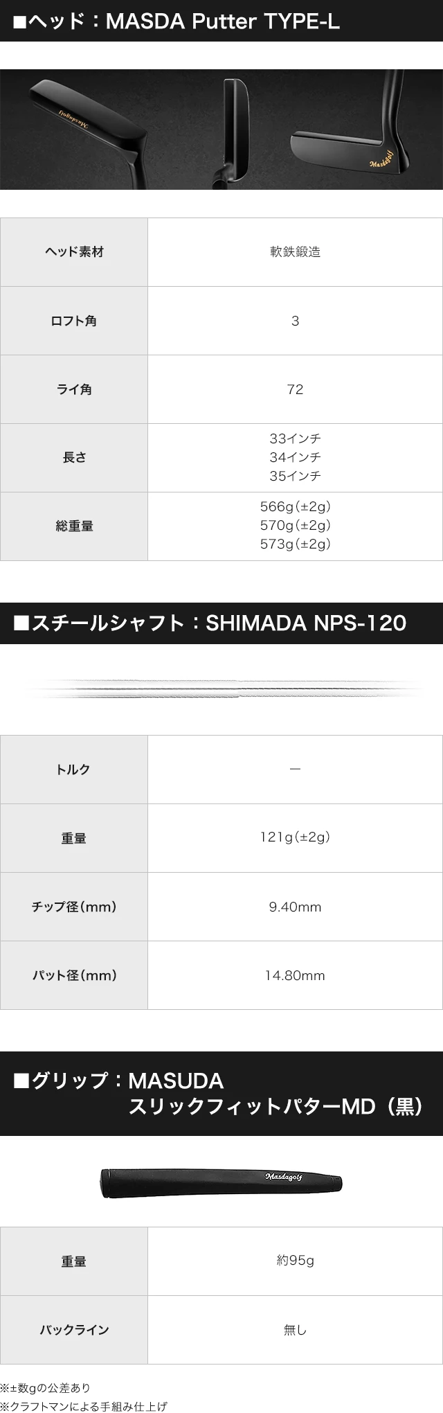 ■ヘッド:MASDA Putter TYPE-L