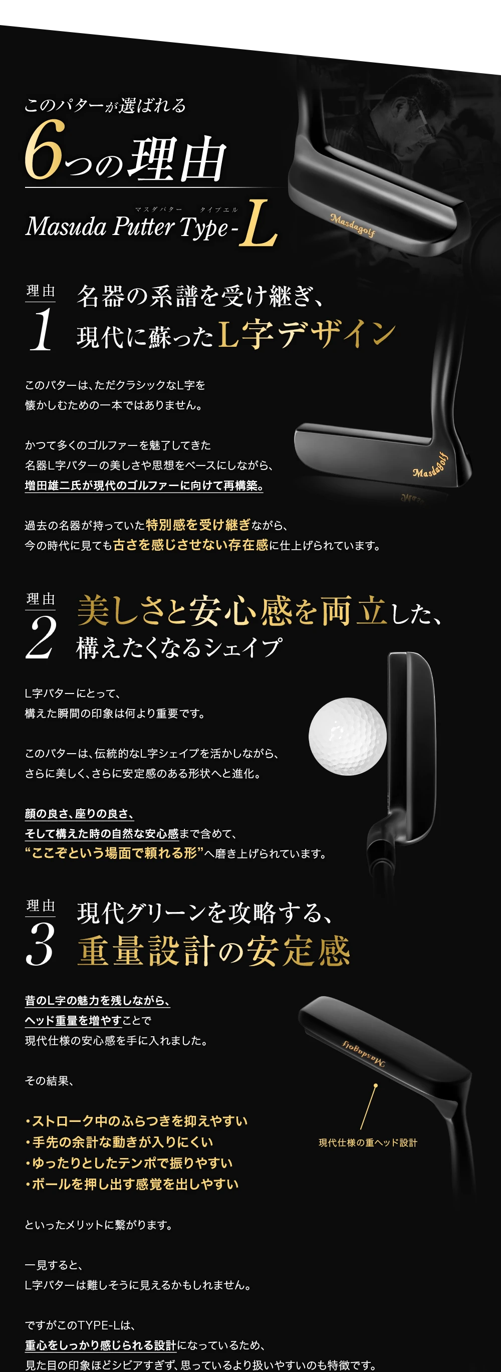 現代のゴルファーに合わせて再構築されたMASDA Putter TYPE-L。